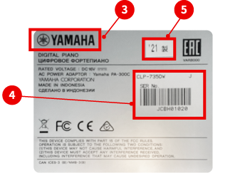 「鍵盤の下側」または「本体背面」に貼られているシールをご確認ください。
