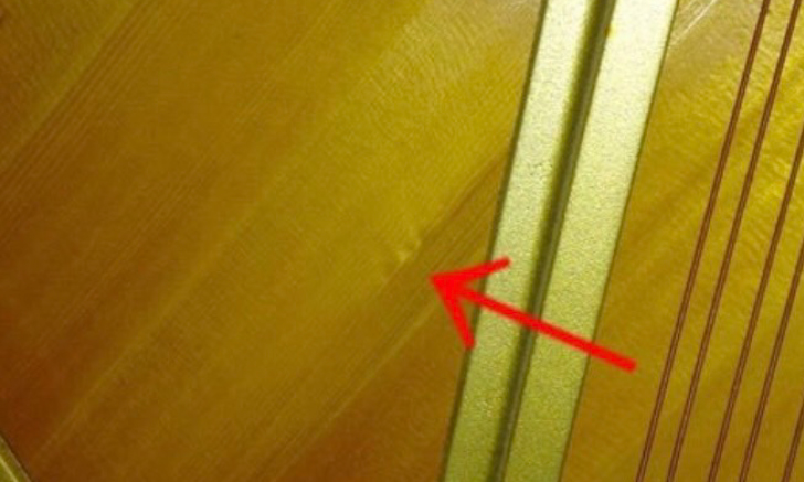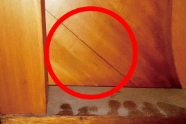 - 響板が乾燥などにより盛り上がる状態です。北海道地域に多い現象でお部屋での暖房器具により、乾燥によりおこります。